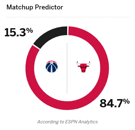 截止目前,公牛取得8勝7負(fù)的戰(zhàn)績,奇才取得1勝14負(fù)。