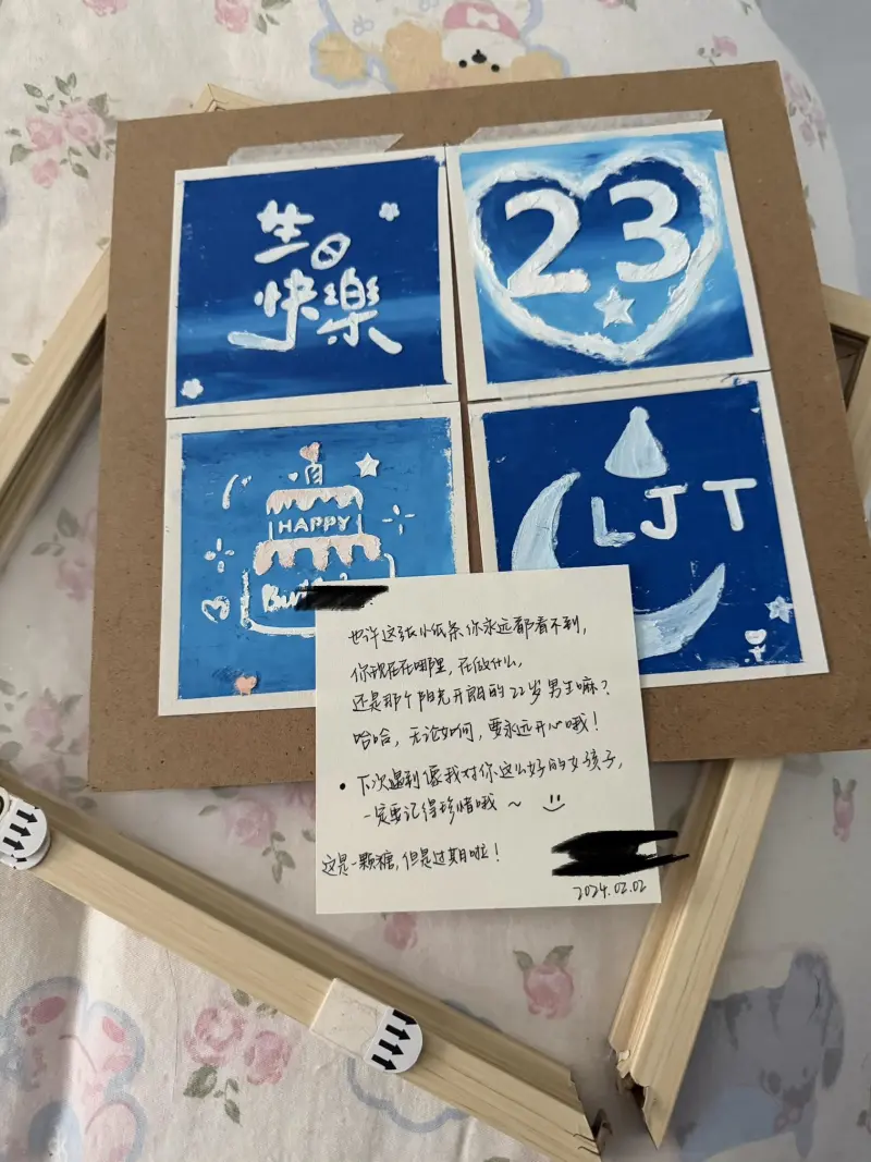 談了兩年多的女朋友,上個月分開了,今天在收拾屋子的時候,翻到了之前生日時,她送我的禮物,是她親自畫的畫,相框背后有一張紙條,看完后我就控制不住眼淚了??
