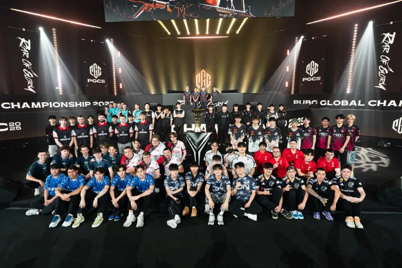 虎撲11月27日訊 PUBG賽事官方社媒更新:A組選手現(xiàn)場合影??
