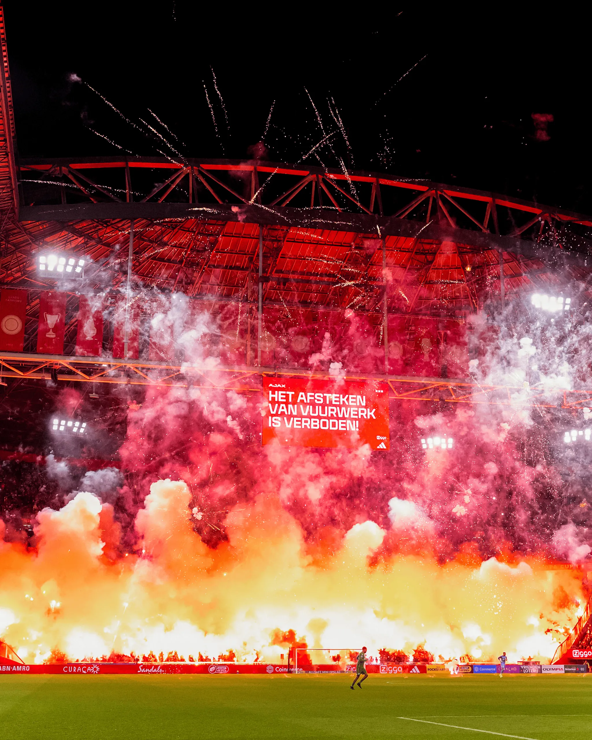 無法保證球員以及所有在場上和場邊工作的燃放人員的安全。我們非常理解絕大多數(shù)善意的煙花阿賈克斯球迷,以及遠(yuǎn)道而來的阿賈格羅寧根球迷的失望情緒。