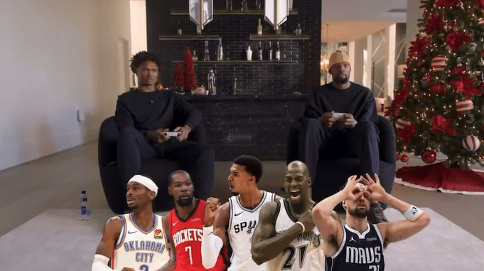 阿門給出的是:自己、KD、詹姆斯、諾維茨基、奧尼爾。