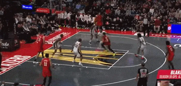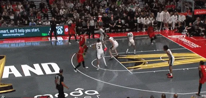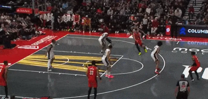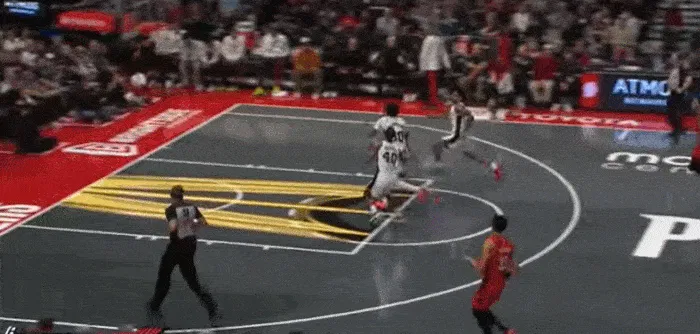 半轉(zhuǎn)換進(jìn)攻 前場1打3 完成扣籃