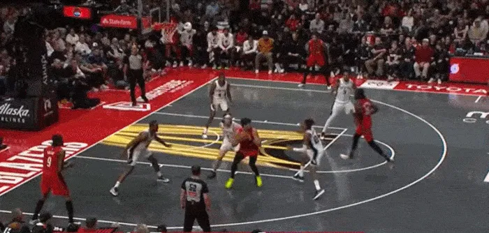 他不光能自己得分,而且他快攻能力突出,憑借身材和速度優(yōu)勢成為聯(lián)盟最具威脅的快攻球員之一,場均快攻得分4分,排名聯(lián)盟第11位。除了陣地和快攻的進(jìn)攻,他更令人看到希望的是他的組織能力,他的身高讓他具備出色的視野,能勝任控球前鋒的角色。缺少主力后衛(wèi)的比賽中,讓球隊進(jìn)攻節(jié)奏保持流暢。他擅長擋拆、手遞手和低位策應(yīng)等戰(zhàn)術(shù),球隊圍繞他制定進(jìn)攻戰(zhàn)術(shù)。