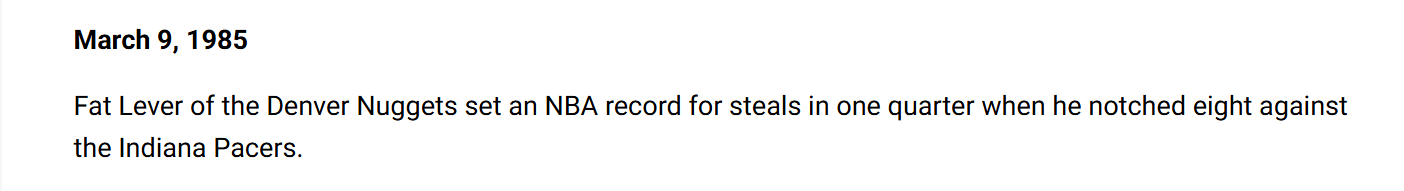 根據(jù)數(shù)據(jù)統(tǒng)計,利弗在該場比賽的一節(jié)比賽中就送出8次搶斷,創(chuàng)造了歷史單節(jié)搶斷數(shù)的紀(jì)錄并保持至今。