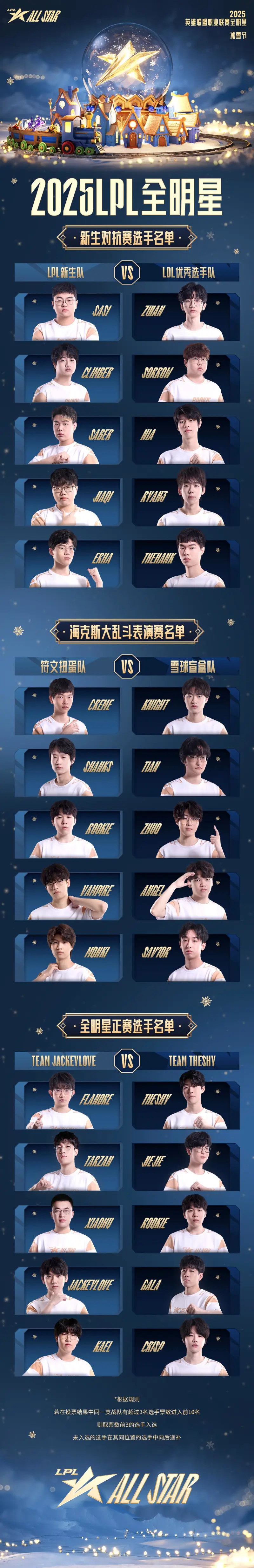 虎撲12月03日訊 今日2025LPL全明星選手名單公布,具體如下: