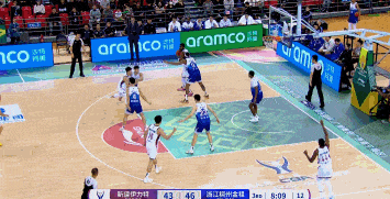 第三節(jié)比賽,翰遜橫傳蘭道夫接約翰遜橫傳命中空位三分,命中下半場開局浙江領(lǐng)先新疆6分??瘴婚_局