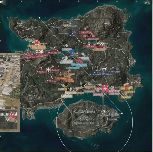 階段6,圈型刷在機(jī)場(chǎng)西北部山地,對(duì)決TE圈邊將SP淘汰出局,淘汰同時(shí)DNF也將EA團(tuán)滅。吃雞