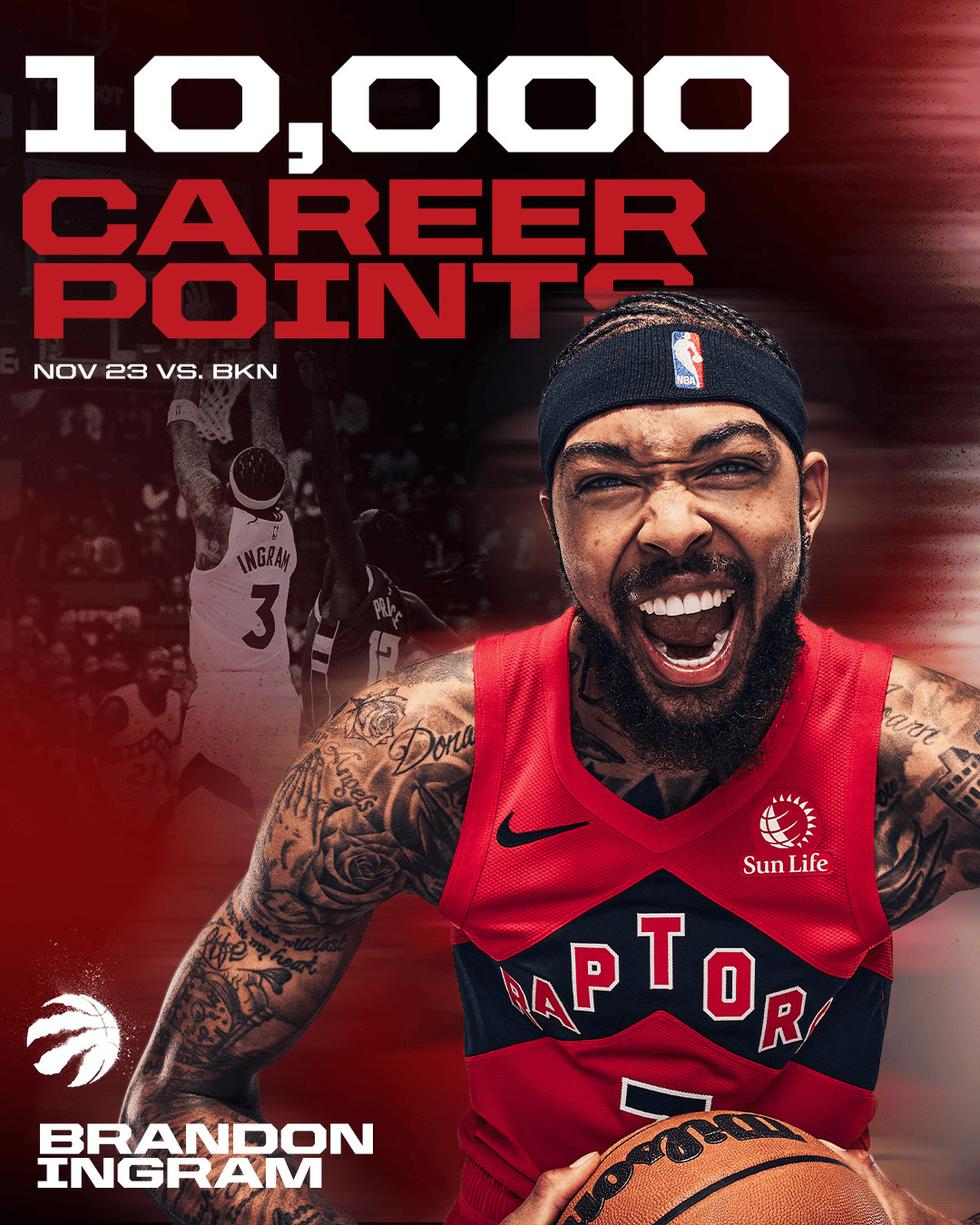 本場(chǎng)比賽,生涯猛龍球員布蘭登-英格拉姆出戰(zhàn)36分鐘,突破投籃18中6、大關(guān)三分5中2得到14分6籃板4助攻2搶斷。板祝