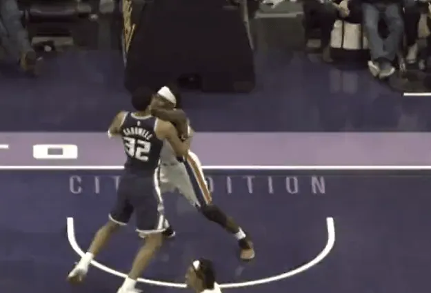比賽的倒卡德威第三節(jié),斯圖爾特支肘頂?shù)箍ǖ峦柋淮灯胀ǚ敢?guī),爾被后者拉拽對(duì)方吃T。吹普