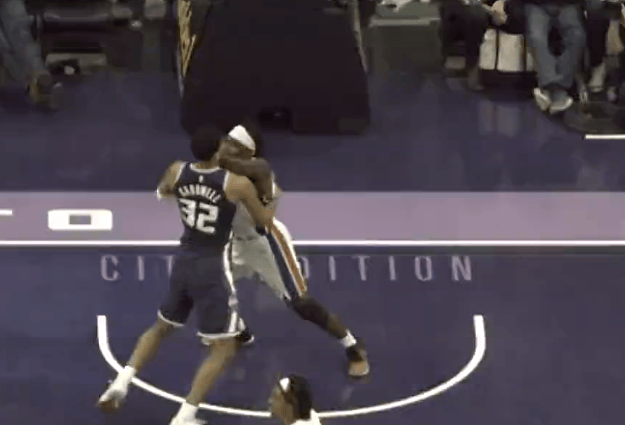 [流言板]斯圖爾特支肘頂?shù)箍ǖ峦柋淮灯胀ǚ敢?guī),后者拉拽對(duì)方吃T