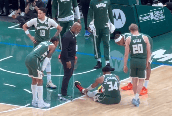 雄鹿球員揚尼斯-阿德托昆博首節(jié)遭遇右小腿拉傷,望沒提前退出比賽。事里