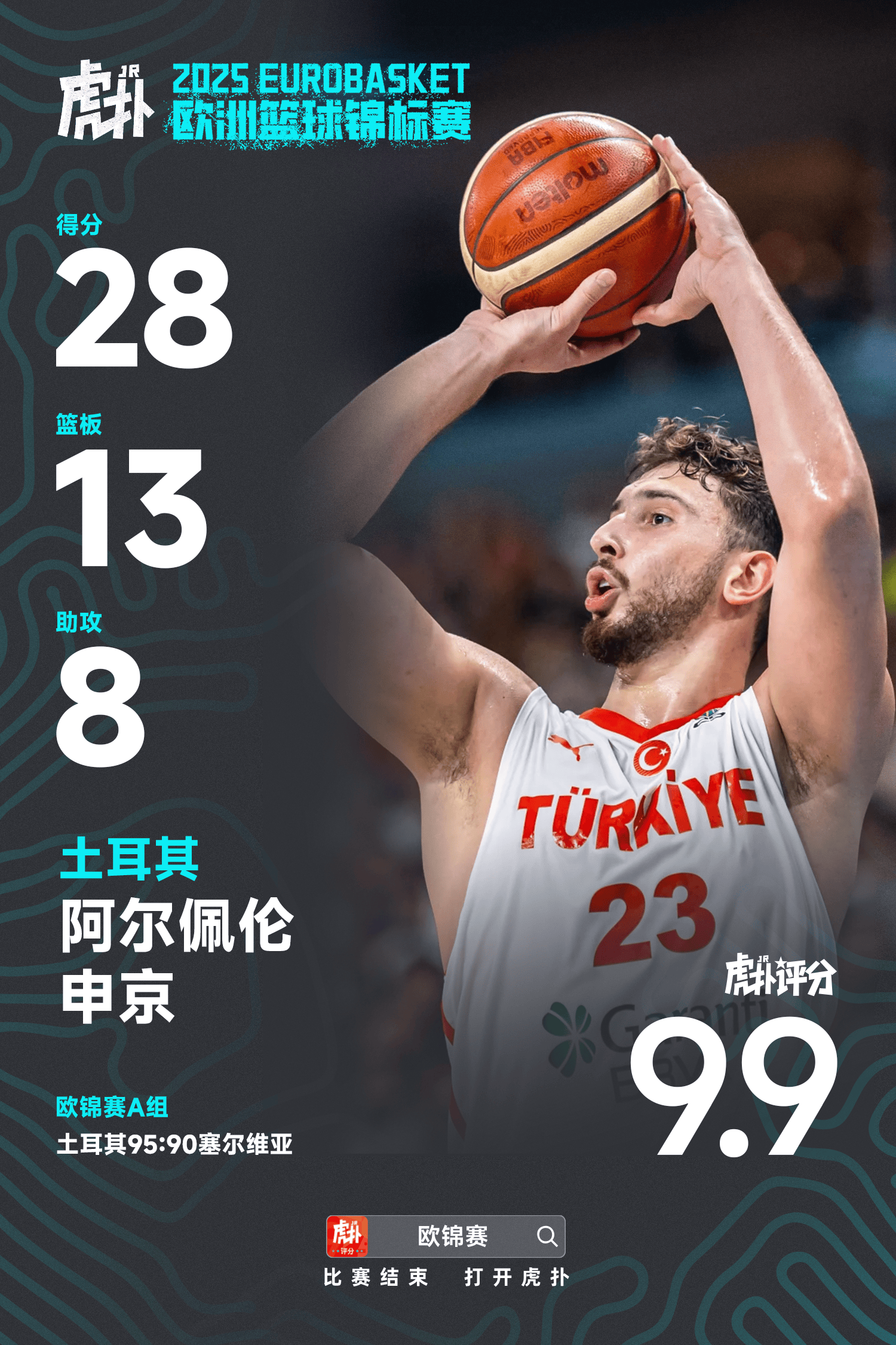 虎撲09月04日訊 男籃歐洲錦標(biāo)賽小組賽,土耳其95-90戰(zhàn)勝塞爾維亞。板無