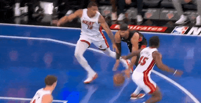 第二節(jié)比賽中,熱火哈特突破急剎車翻身跳投壓哨命中,哈特尼克斯半場領(lǐng)先熱火10分。突破投壓