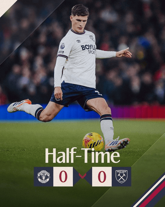 虎撲12月04日訊 英超第14輪,西漢姆聯(lián)客場半場0-0曼聯(lián)。西漢