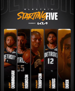 活塞首發(fā):鄧肯-羅賓遜、寧安奧薩爾-湯普森、杰倫-杜倫、托拜爾斯-哈里斯、凱德-坎寧安。