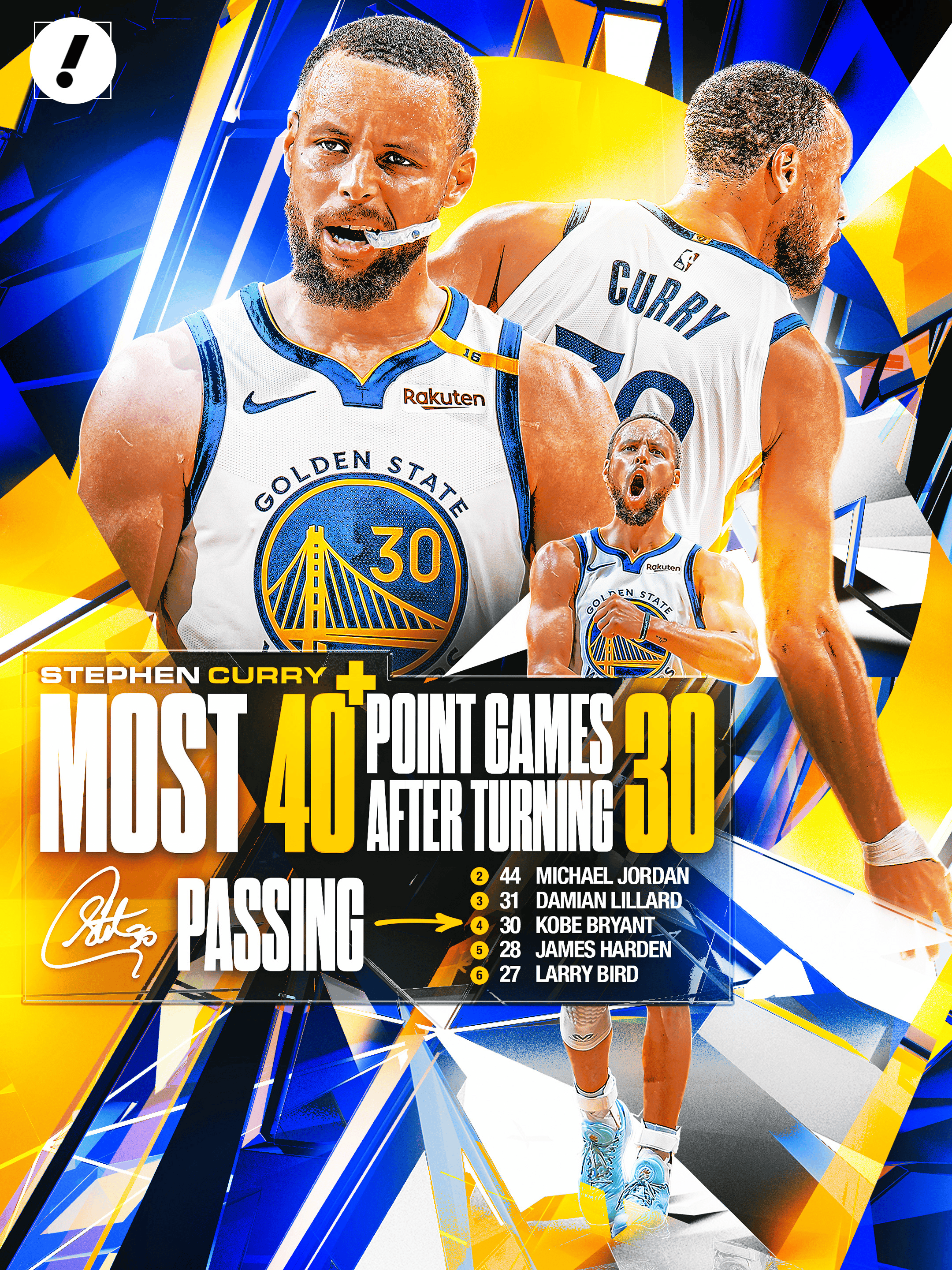 勇士球員斯蒂芬-庫(kù)里30歲后第45次砍下40+,超越邁克爾-喬丹(44次)升至歷史第一。