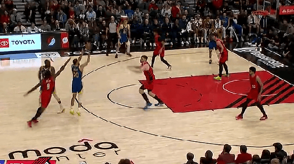 NBA常規(guī)賽,勇士對陣開拓者的拆分比賽正在進行中。