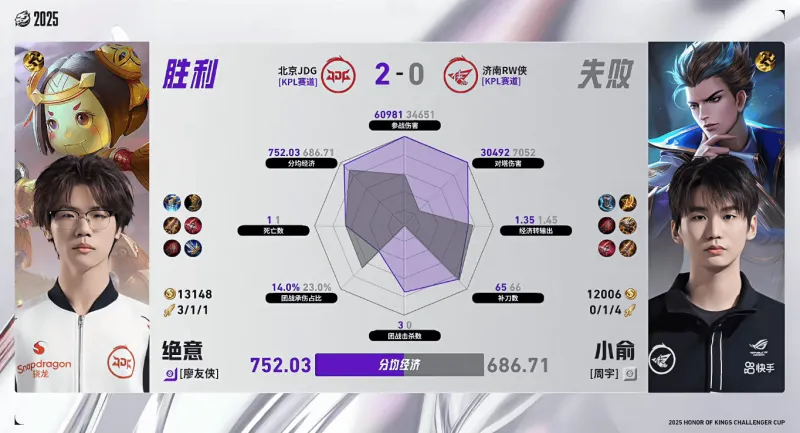 JDG/RW俠第二局?jǐn)?shù)據(jù)對(duì)比:JDG雙邊多數(shù)據(jù)領(lǐng)先對(duì)位
