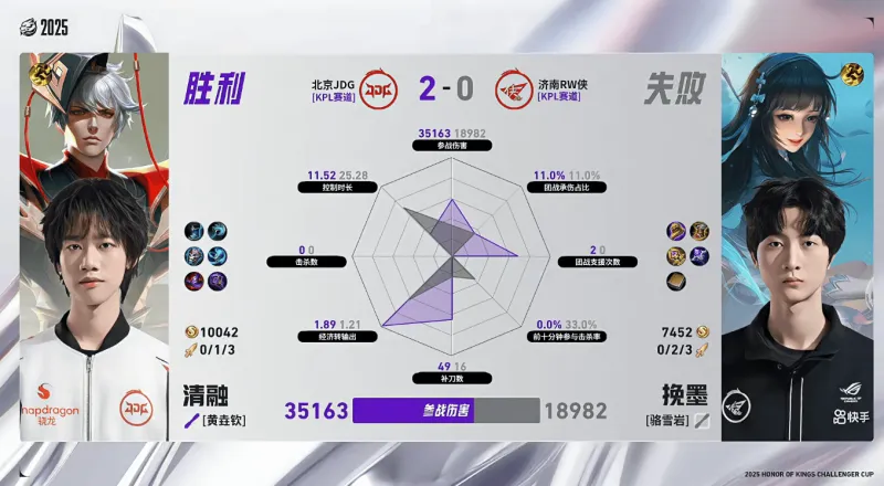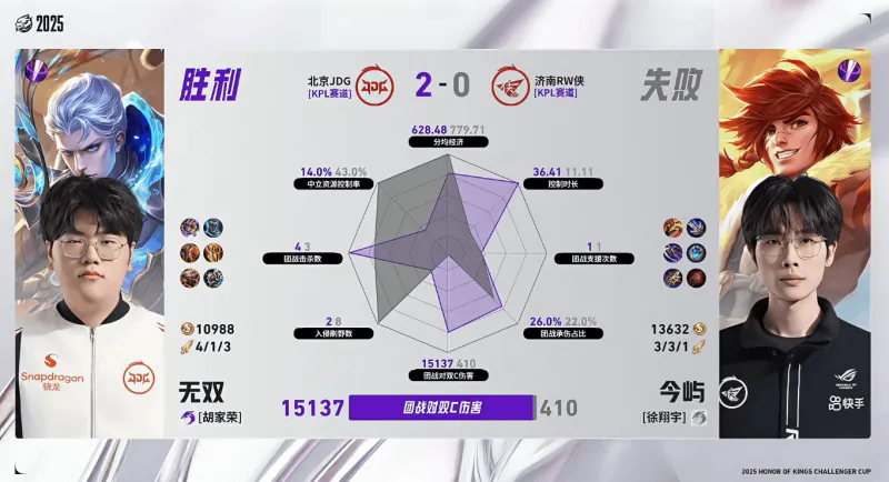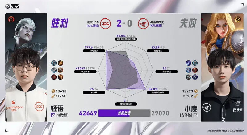 [流言板]JDG/RW俠第二局?jǐn)?shù)據(jù)對(duì)比:JDG雙邊多數(shù)據(jù)領(lǐng)先對(duì)位由響亮的板J比ID12138 發(fā)表在王者榮耀 https://bbs.hupu.com/kog