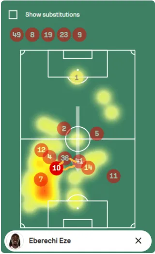 可以說,艾澤踢右 8 的表現(xiàn)不如 健康的 厄德高,至少厄德高還懂得往左側(cè)放一兩腳長(zhǎng)傳。