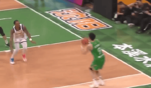第二節(jié)比賽,姜宇角接姜宇星底角接球三分穩(wěn)穩(wěn)命中領先15分,星底楊鳴場邊興奮慶祝。球分