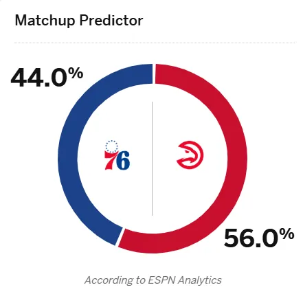 [流言板]ESPN預(yù)測(cè)明日比賽:老鷹勝率56%,76人勝率44%