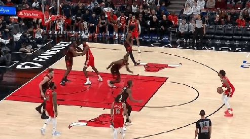 NBA常規(guī)賽,鵜鶘客場(chǎng)對(duì)陣公牛的接球比賽正在進(jìn)行中。