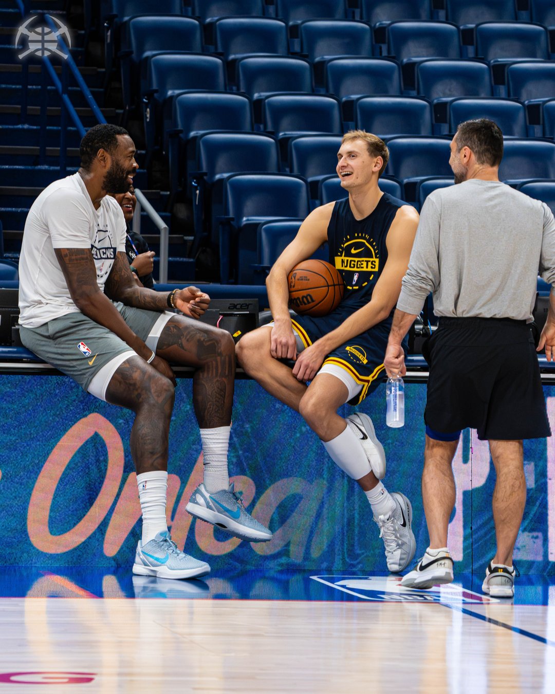 [流言板]老隊(duì)友相見(jiàn)!小喬丹在賽前熱身時(shí)與掘金隊(duì)員親切聊天