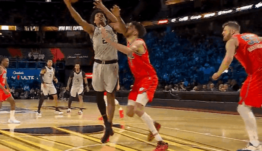 NBA杯半決賽,馬刺對(duì)陣?yán)做倪M(jìn)攻比賽正在進(jìn)行中。