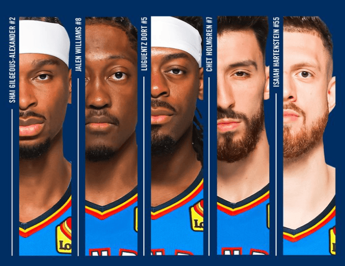 “豪取24勝1負(fù)傲人戰(zhàn)績的雷霆,迎來了自今年總決賽之后的首次首發(fā)五虎全員合體?!?/p>來源:X
