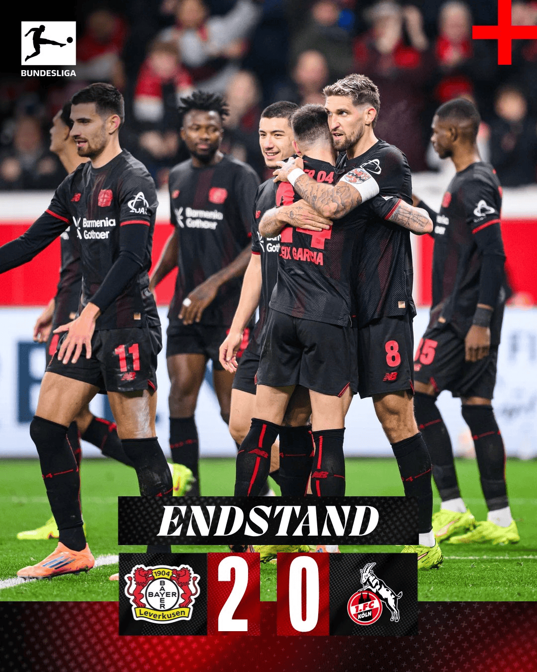 全場比賽占據(jù)優(yōu)勢的勒沃庫森在下半場憑借泰里耶和安德里希的進球打開勝利之門,其中安德里希的進球也是這位藥廠隊長本賽季的首粒進球。