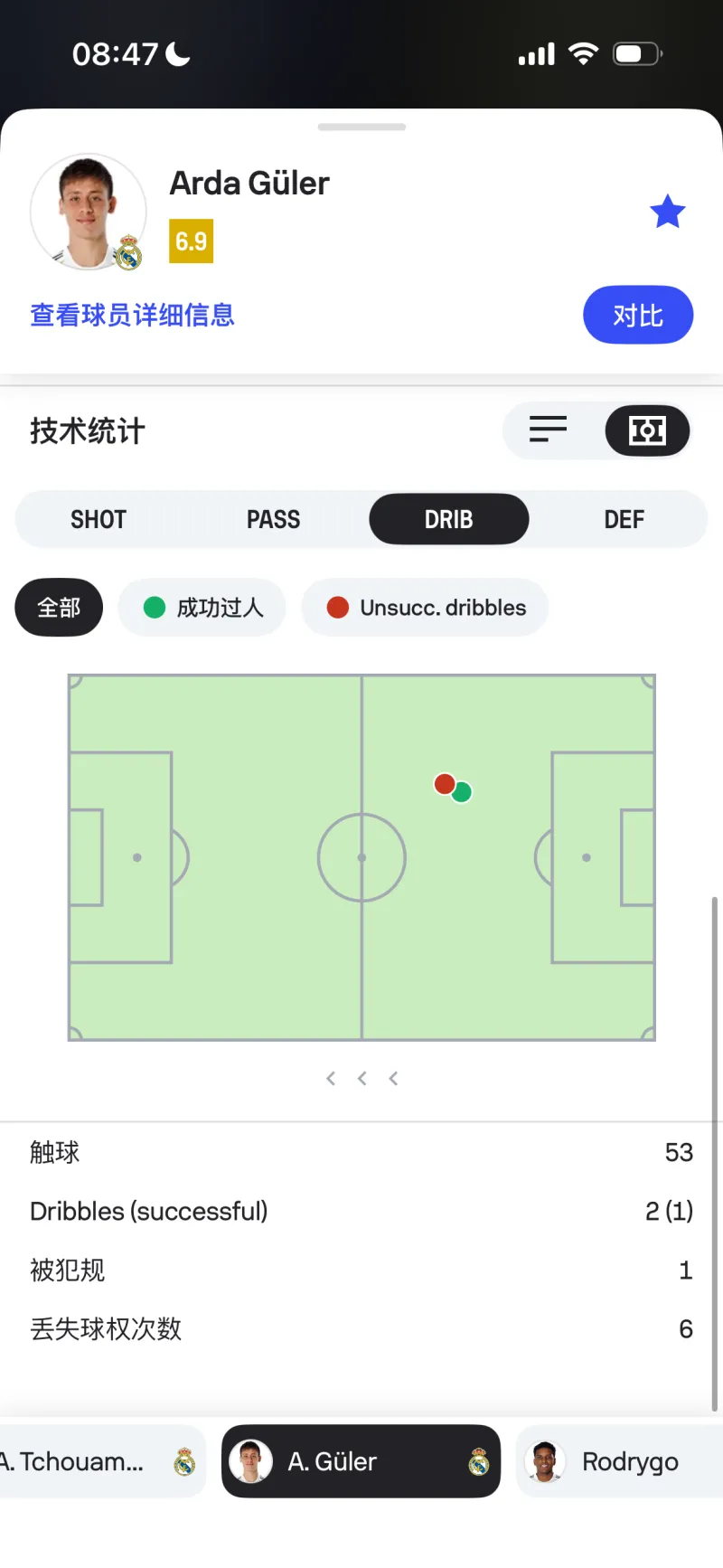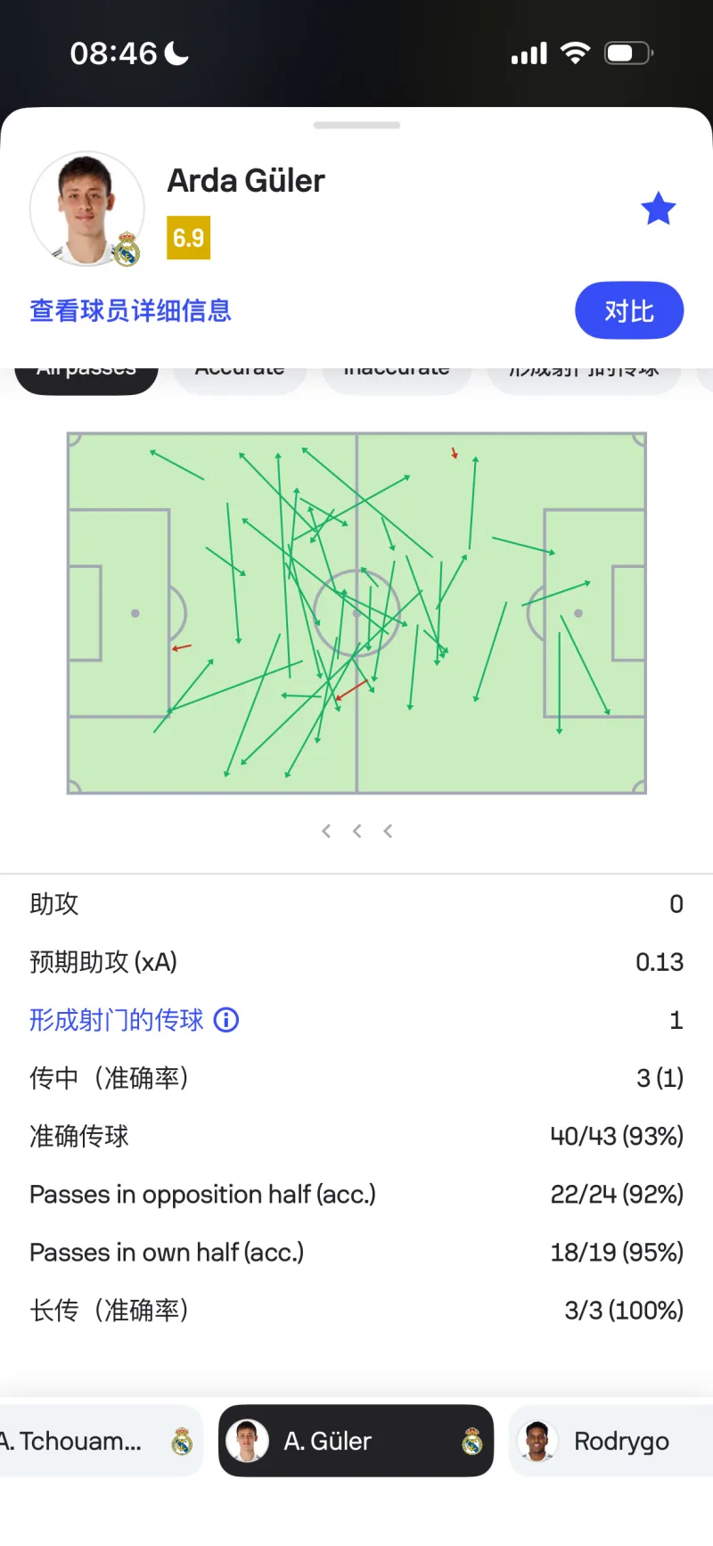 問就是一碰就丟球 全場丟了六個,每個中場都有一碰就丟球畫面,角球質(zhì)量也極高,貝林差點也進了個