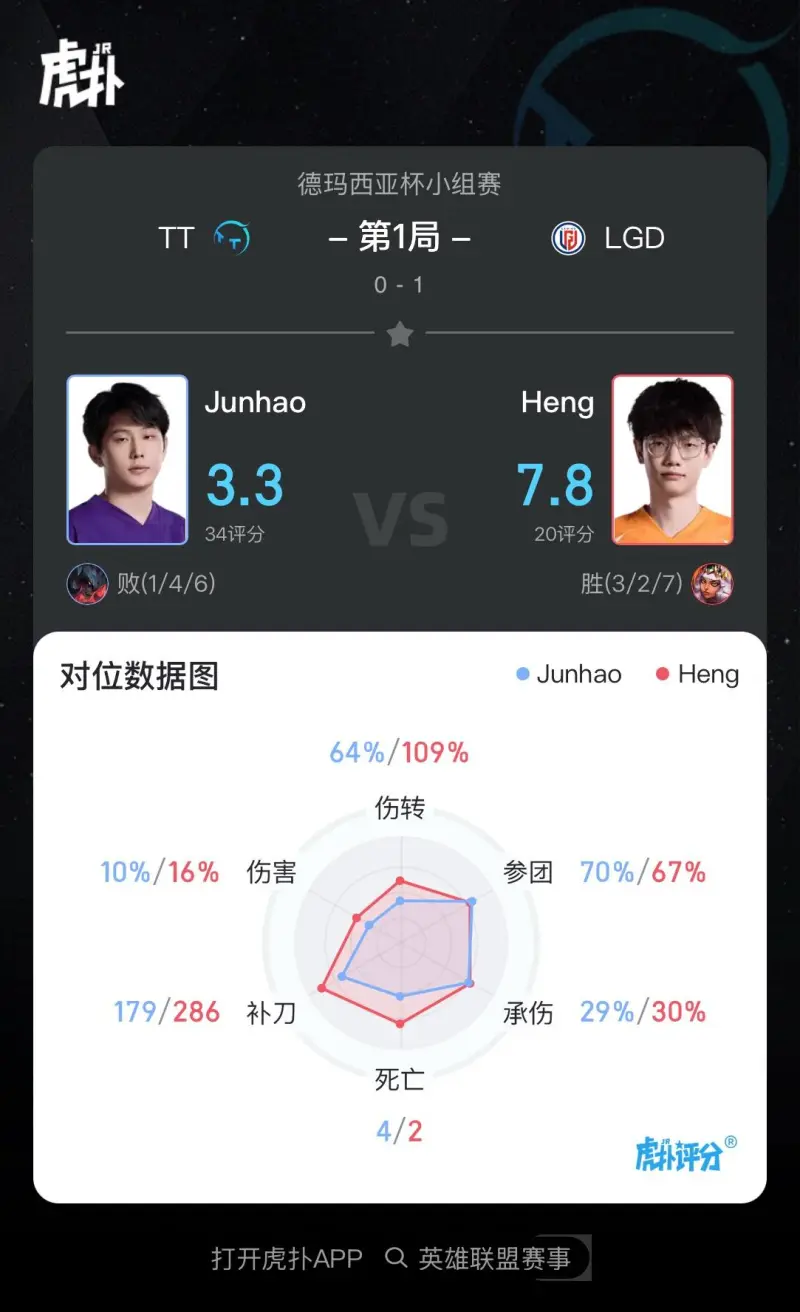 [流言板]Heng使用奇亞娜打出3/2/7戰(zhàn)績,斬獲LGD對陣TT第一局MVP