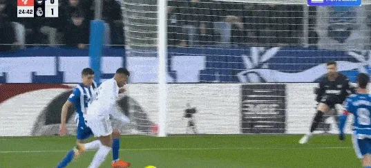 姆巴佩接直塞,左路高速插上內(nèi)切破門,皇馬1