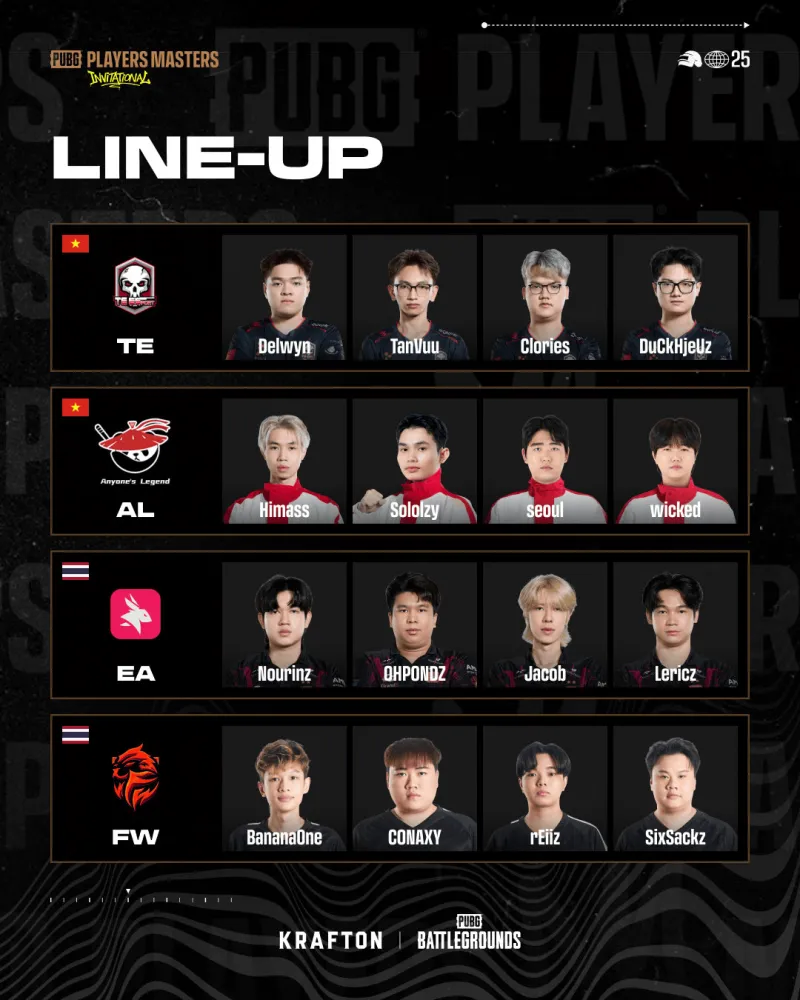 請(qǐng)注意,賽事賽參賽隊(duì)手全視角由于區(qū)域名額、特別邀請(qǐng)或本次賽事特有的隊(duì)伍安排,部分選手可能不以原所屬戰(zhàn)隊(duì)名義出戰(zhàn)。