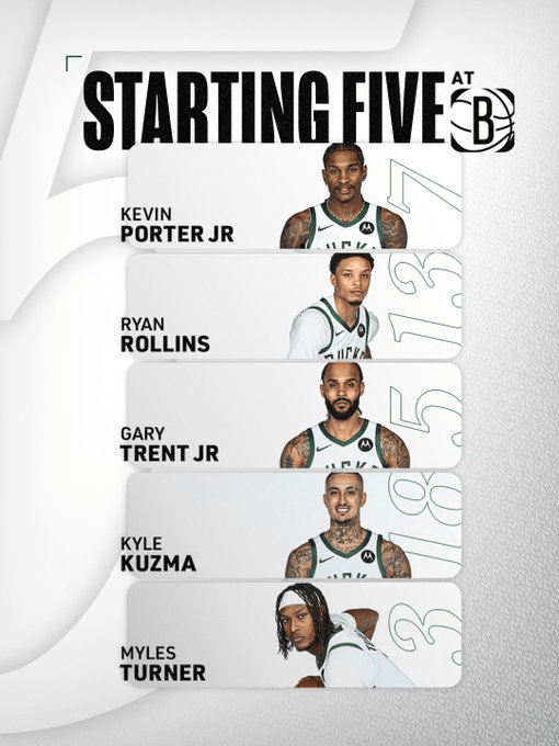 [流言板]雄鹿首發(fā):特倫特、特納、羅林斯、庫茲馬、小波特