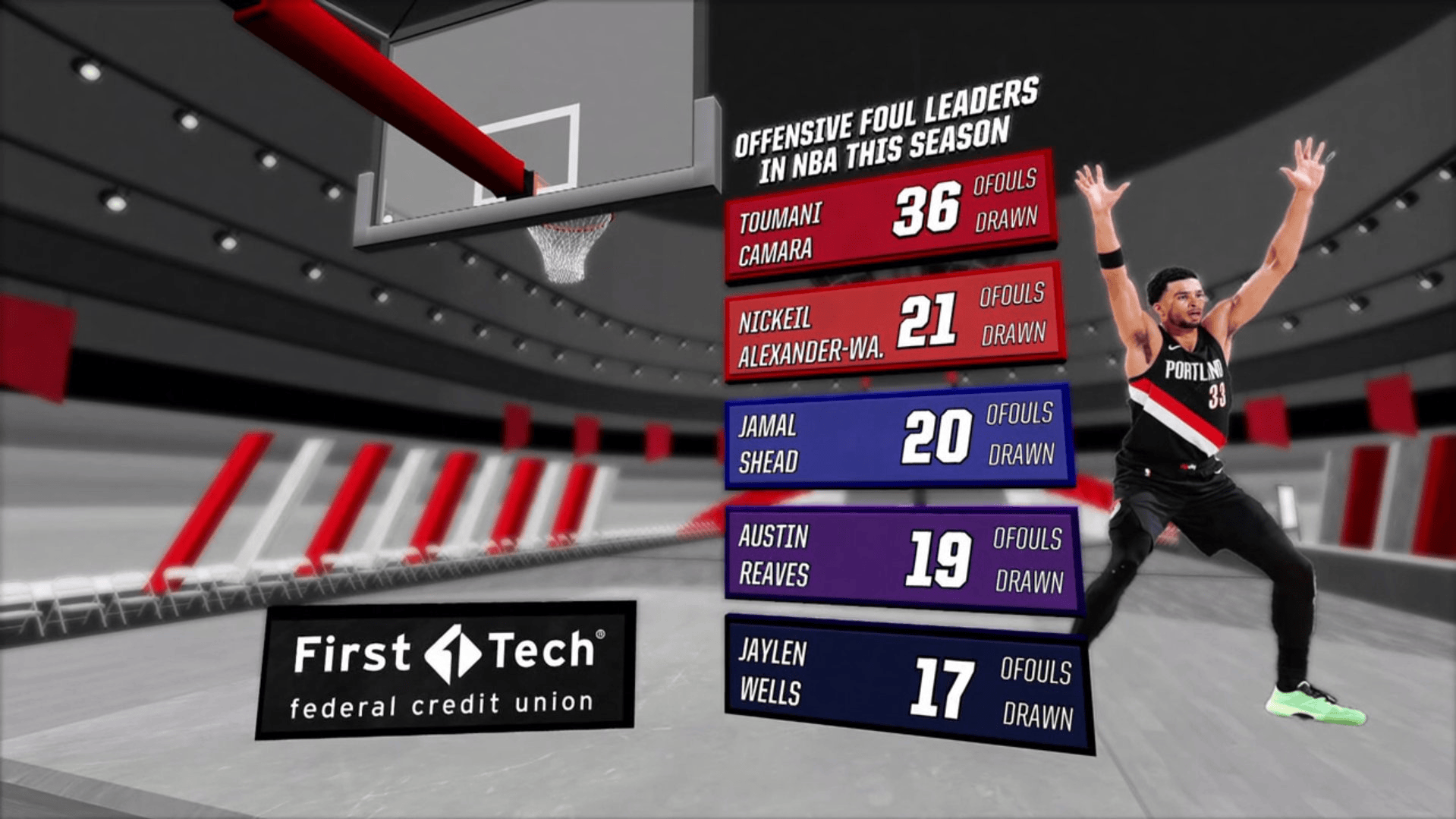 轉播方列出數(shù)據(jù):卡馬拉本賽季已經造成對手36次進攻犯規(guī),造成聯(lián)盟第一高。對手第斷
