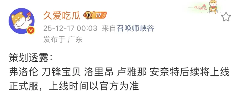 瓜主爆料:刀鋒寶貝等五英雄即將上線正式服,瓜主