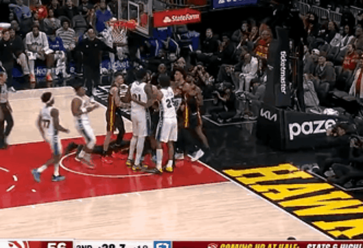 第二節(jié)比賽,惡意恩比德手臂擊打奧孔古頸部,犯規(guī)隨后恩比德與約翰遜爆發(fā)沖突。爆發(fā)比德部被