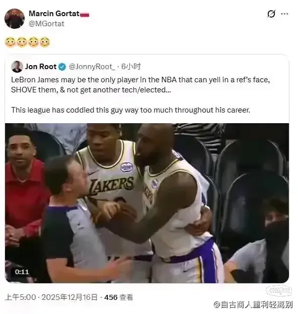 戈塔特轉(zhuǎn)發(fā)記者推文:詹姆斯可能是nba唯一一個(gè)對(duì)裁判推搡,大吼卻不會(huì)被驅(qū)逐的球員!