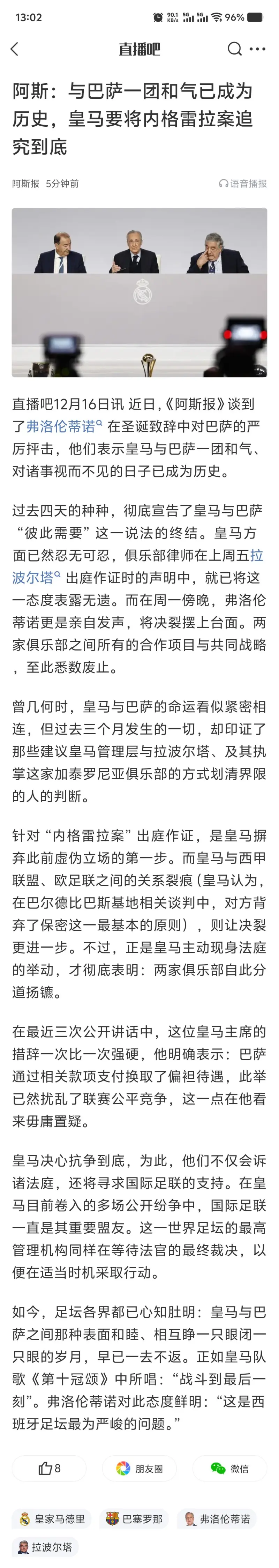 阿斯:與巴薩一團(tuán)和氣已成為歷史,皇馬要將內(nèi)格雷拉案追究到底