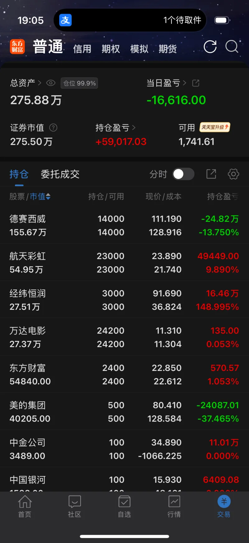 東財明明很低的位置進去的,還是沖高后回踩 2 天,只剩 1% 利潤墊了。這種散戶多籌碼散的票真難做,很多這樣類似基本面不錯的公司,結果技術面被壓制的很難受,體感確實不太好,不適合鈍感力不好的人持有??偟膩碚f,大部分人還是不適合左側交易,大部分人也不適合炒個股。