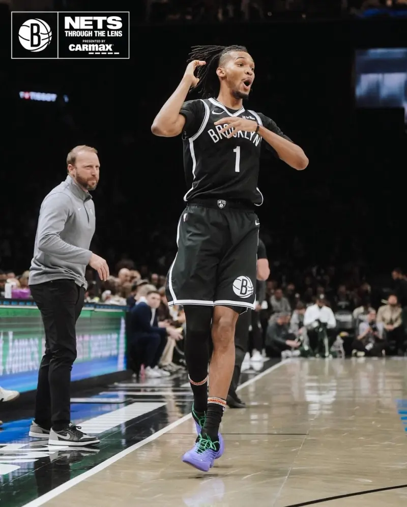 今日,夜晚籃網(wǎng)官方ins曬出一組球員賽場(chǎng)照與球迷分享。取勝