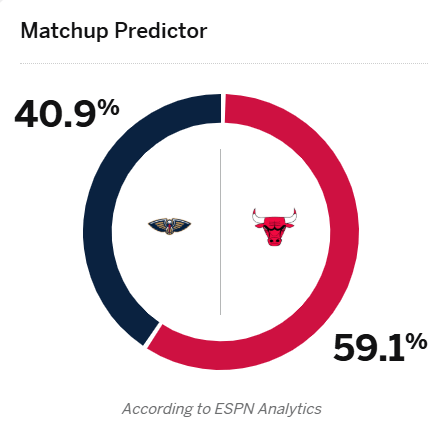 [流言板]ESPN預測明日比賽:公牛勝率59.1%,鵜鶘勝率40.9%