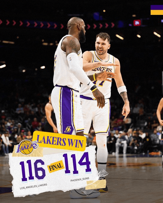 [流言板]湖人官方發(fā)布全場(chǎng)比分海報(bào):客場(chǎng)戰(zhàn)勝太陽(yáng),戰(zhàn)績(jī)升至18勝7負(fù)