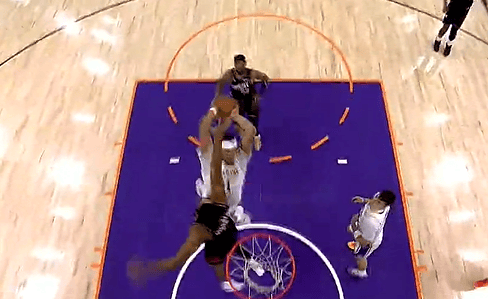 比賽第三節(jié),迎著伊戈海斯反擊積極跟進(jìn),達(dá)羅迎著伊戈達(dá)羅完成雙手戰(zhàn)斧隔扣。完成