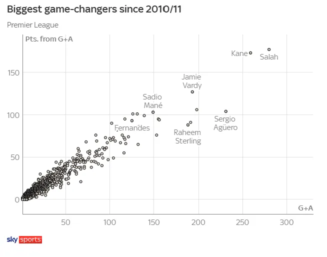 虎撲12月17日訊 天空體育數(shù)據(jù)欄目《Between the Lines》對英超球員通過進(jìn)球和助攻直接改變比賽結(jié)果、為球隊贏得積分的情況進(jìn)行了統(tǒng)計,并對本賽季與歷史層面(自2010-11賽季起)的數(shù)據(jù)進(jìn)行了對比。
