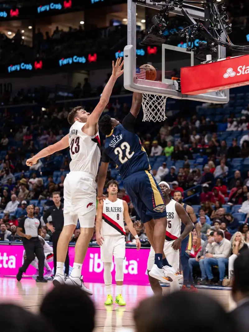 在今日鵜鶘以117-125不敵開(kāi)拓者的賞鵜比賽中,德里克-奎因出場(chǎng)37分鐘,鶘官得到26分7籃板4助攻。德里